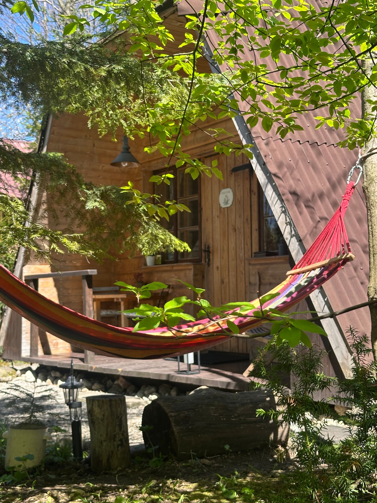 HYGGE A place for mountain lovers and those who value GLAMPING-STYLE relaxation, greenery, the murmur of a stream, and the tranquility of nature, all while enjoying the convenience of a central location on Krupówki Street. A 5-minute walk to the Park of Lights. If you're looking for spaciousness and luxury instead of trees and birdsong, or are planning a party, this isn't the place for you :). This small heated cottage, located on the iconic Brda River, has been renovated.