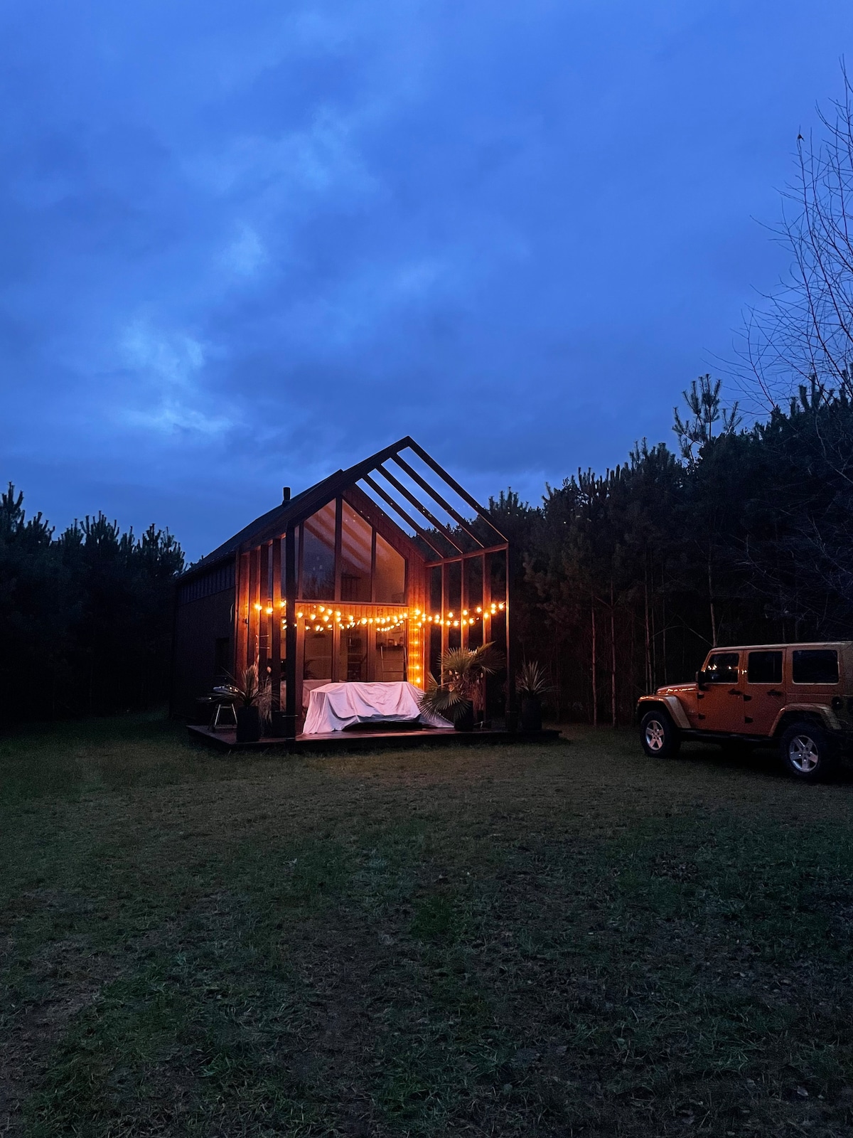 Około 60 km od Warszawy , na Mazowieckiej wsi , czekają na Ciebie dwa kameralne Tiny House. Znajdziesz tu spokój , ciszę i odpoczynek tak bardzo potrzebny w obecnych czasach. Domki pomieszczą komfortowo 2 osoby dorosłe. U nas odpoczniesz bez dzieci swoich i cudzych . Chętnie za to przyjmiemy niekłopotliwe zwierzęta. Minimalny czas najmu to dwie noce. W okresie wakacyjnym preferujemy jednak dłuższe pobyty. Możecie u nas korzystać z jacuzzi i sauny - są to opcje dodatkowo płatne. Zapraszamy .
