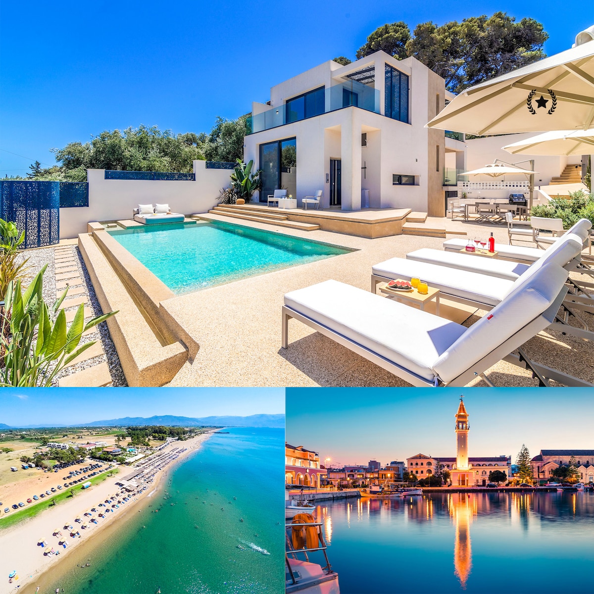Offering unrivalled space and unsurpassed privacy, the Muthee Villa (Award winning villa) is the ultimate blissful retreat. Located in Lagana's area, 3km away from the airport & 5km from Zante town, this stylish villa, suits to all guests, who wish to reside in privileged splendor with high quality services.