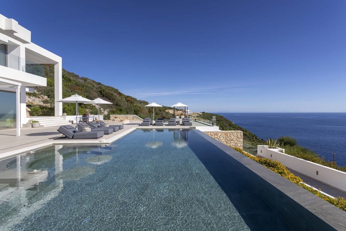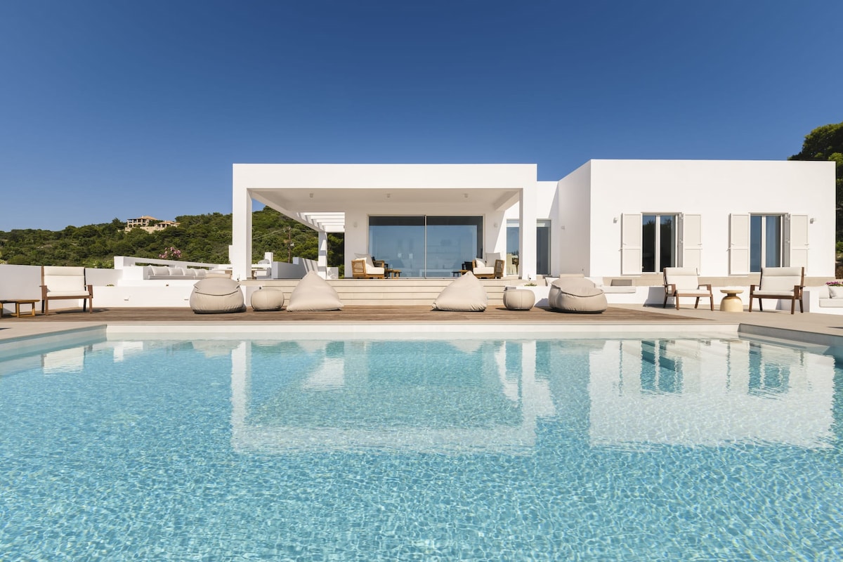 Omnia luxury sea view villa is as its name stands for in latin “ everything “ that you might dream of. Built in a very privileged location on the Agassi hilltop it offers not only a panoramic view of both the shimmering sea and the island's main town and harbor but also it gives you a proximity to “everything” you might need . This unique private property brings enthusiasm with the natural and modern decoration in minimalistic design in soft tones.