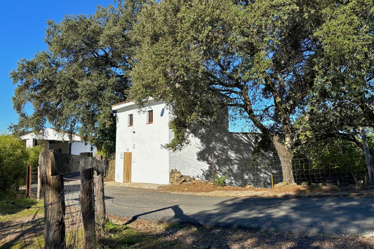 Bicentenary stone house in a secluded village between Aracena and Riotinto. Enjoy a barbecue with valley views, cozy fireplace, patio with loungers, and unforgettable sunsets. Silence, nature, and starry skies, with fast satellite internet for remote work, video calls, or streaming. Perfect for unwinding, reading, walking, or simply letting time stand still.