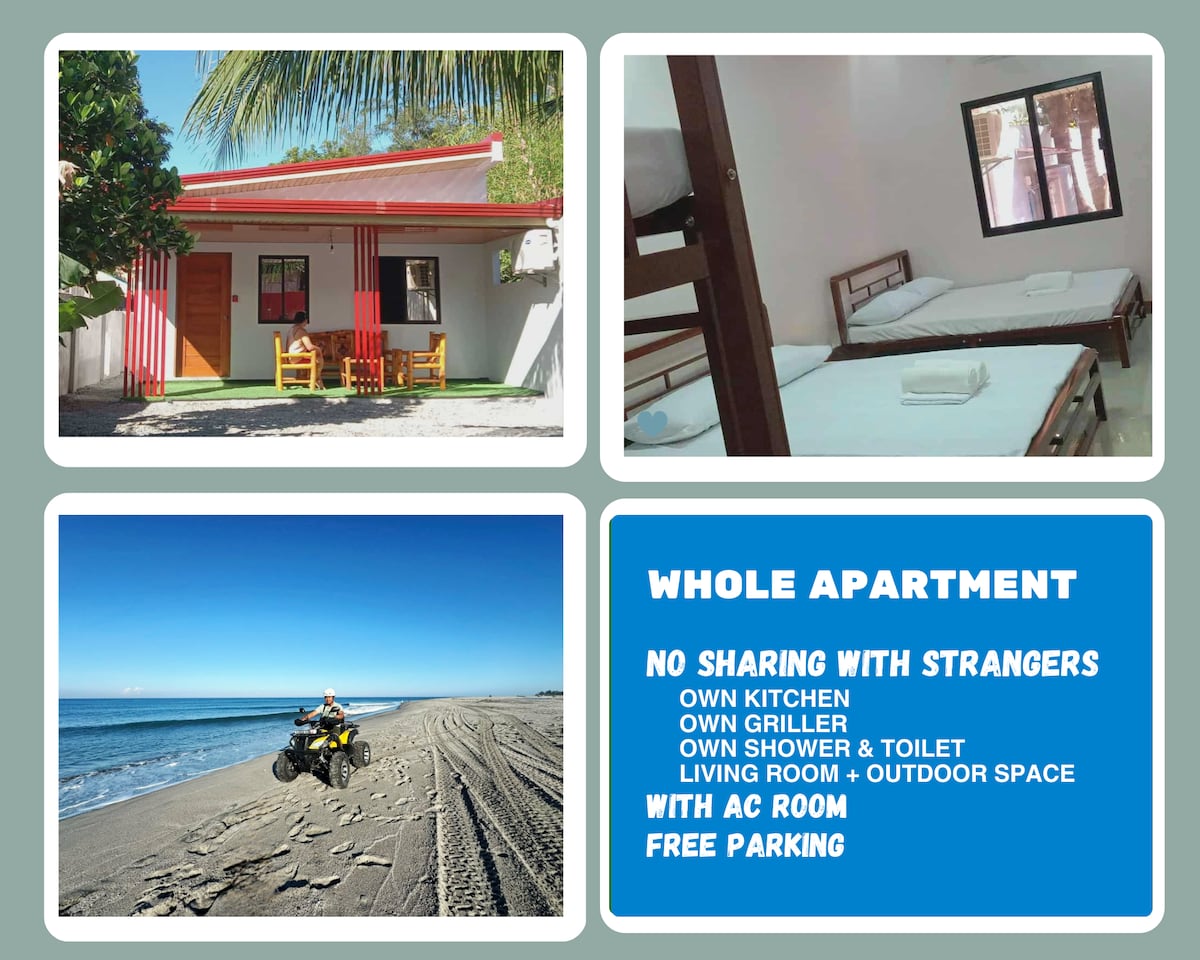 📍 UGALDE’S COASTAL CABINS (Unit A) – San Felipe, Zambales • 2-minute walk to San Felipe Beach • just over 1 km from the popular Liwliwa Beach • 6-minute drive to El Zamba ------------------ ℹ️ NO SHARING WITH OTHER GROUPS! - Own Kitchen (fully-equipped) and griller - Own toilet and shower - Own outdoor space ℹ️Air-conditioned unit ℹ️FREE onsite parking