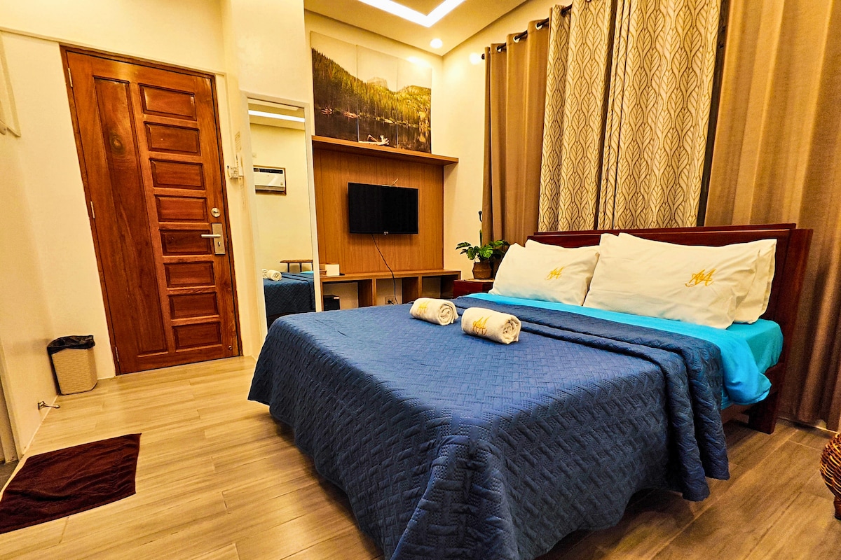Unwind in the Puerto Galera Room at A&A of the North, a comfortable Deluxe room perfectly suited for couples. Located on the second floor, this room features modern interiors, a private attached bathroom (CR), and a wall-mounted TV for your entertainment. While offering a quiet, inward-facing atmosphere, you are just a few steps away from the Common Balcony where you can enjoy the fresh sea breeze and the famous Zambales sunset.