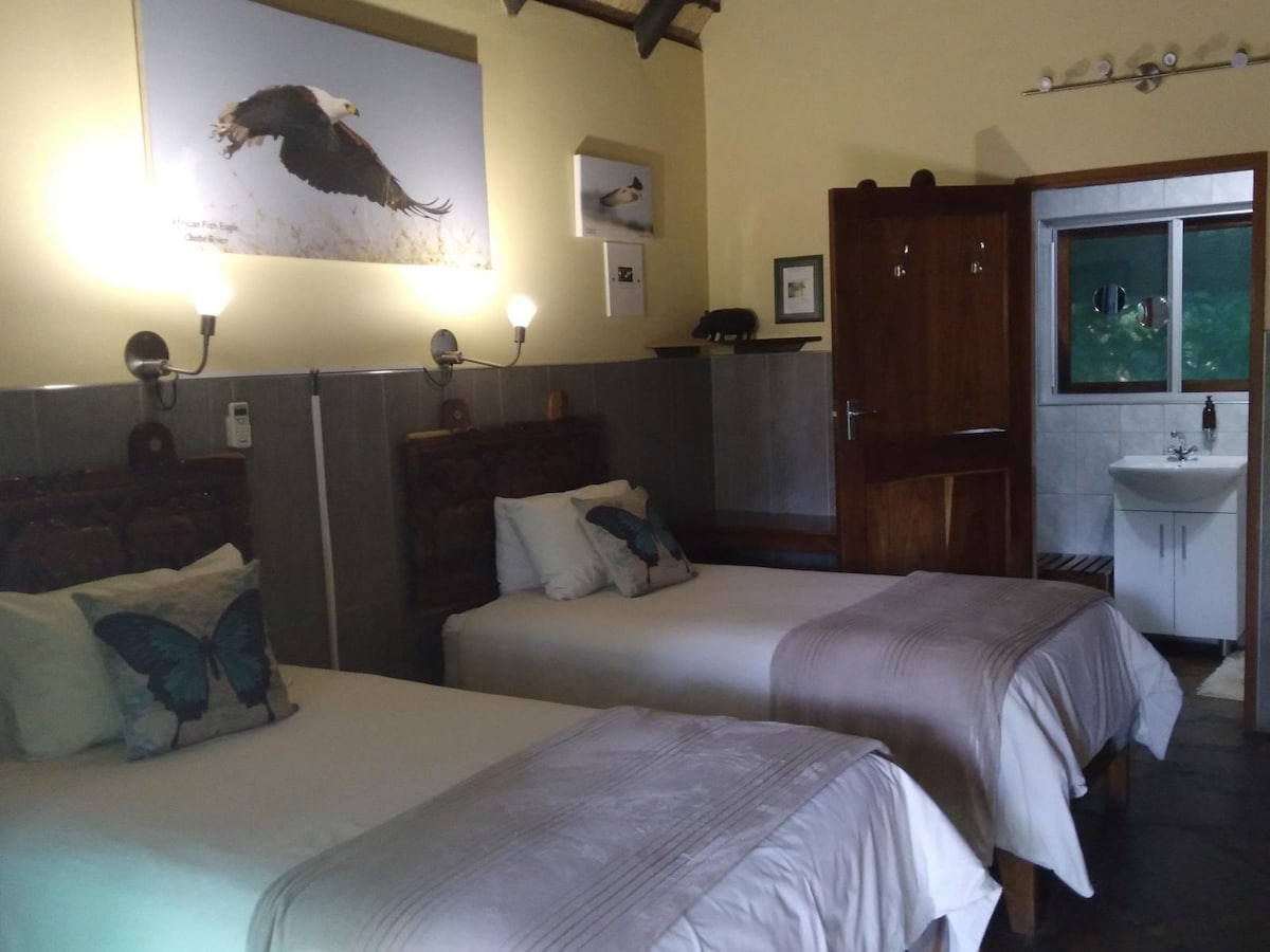 5x 1-Bedroom chalets with king(convertible to twin beds), en-suite shower, basin, and toilet. Overlooks the Chobe River and is only accessible by boat. All meals included with 1 game drive.