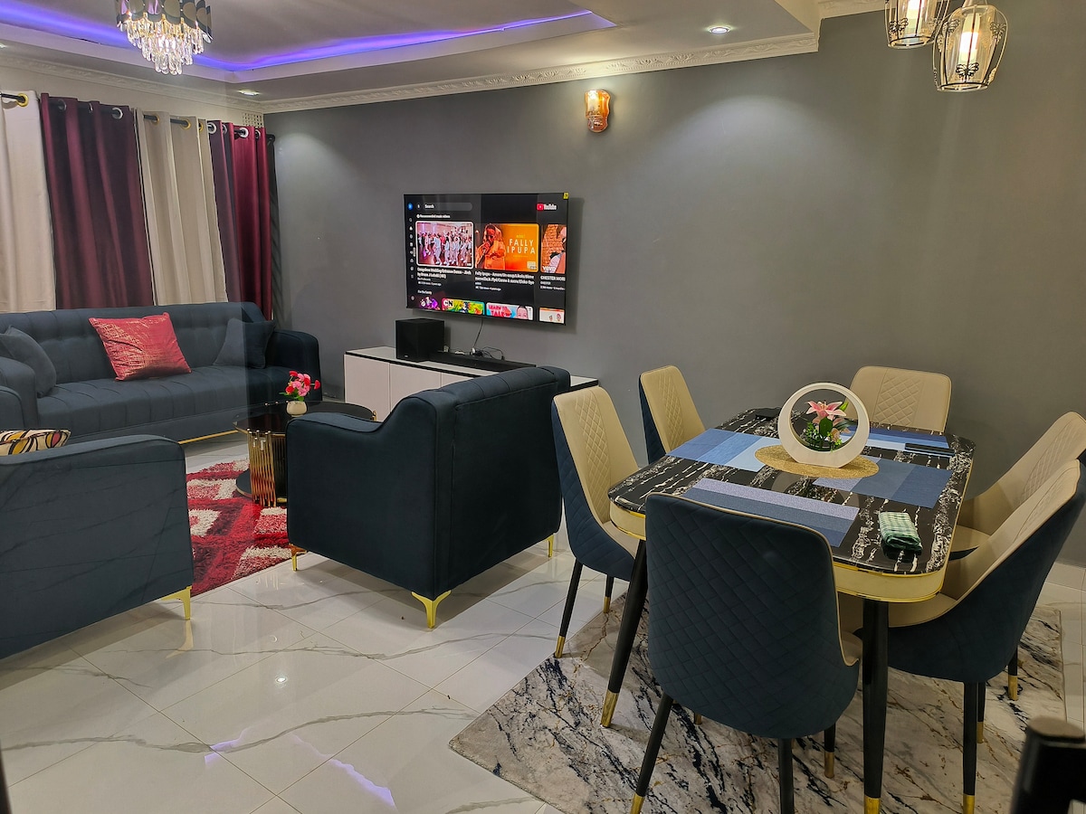 Modern, private, and perfectly located! Enjoy an LG Dual Inverter AC, LG OLED Evo AI 55" TV (2025 model) with prime video. Netflix, YouTube etc. Starlink WiFi. 2m orthopedic hybrid bed, 24/7 power, hot water, a solar iron, and a full kitchen with gas stove, double-door fridge, bar stools, and cocktail glasses. Relax in a cozy living room with a ceiling speaker, workspace, and beautiful couch. Just 5–10 minutes from six malls. You’ll love it here. Book now!