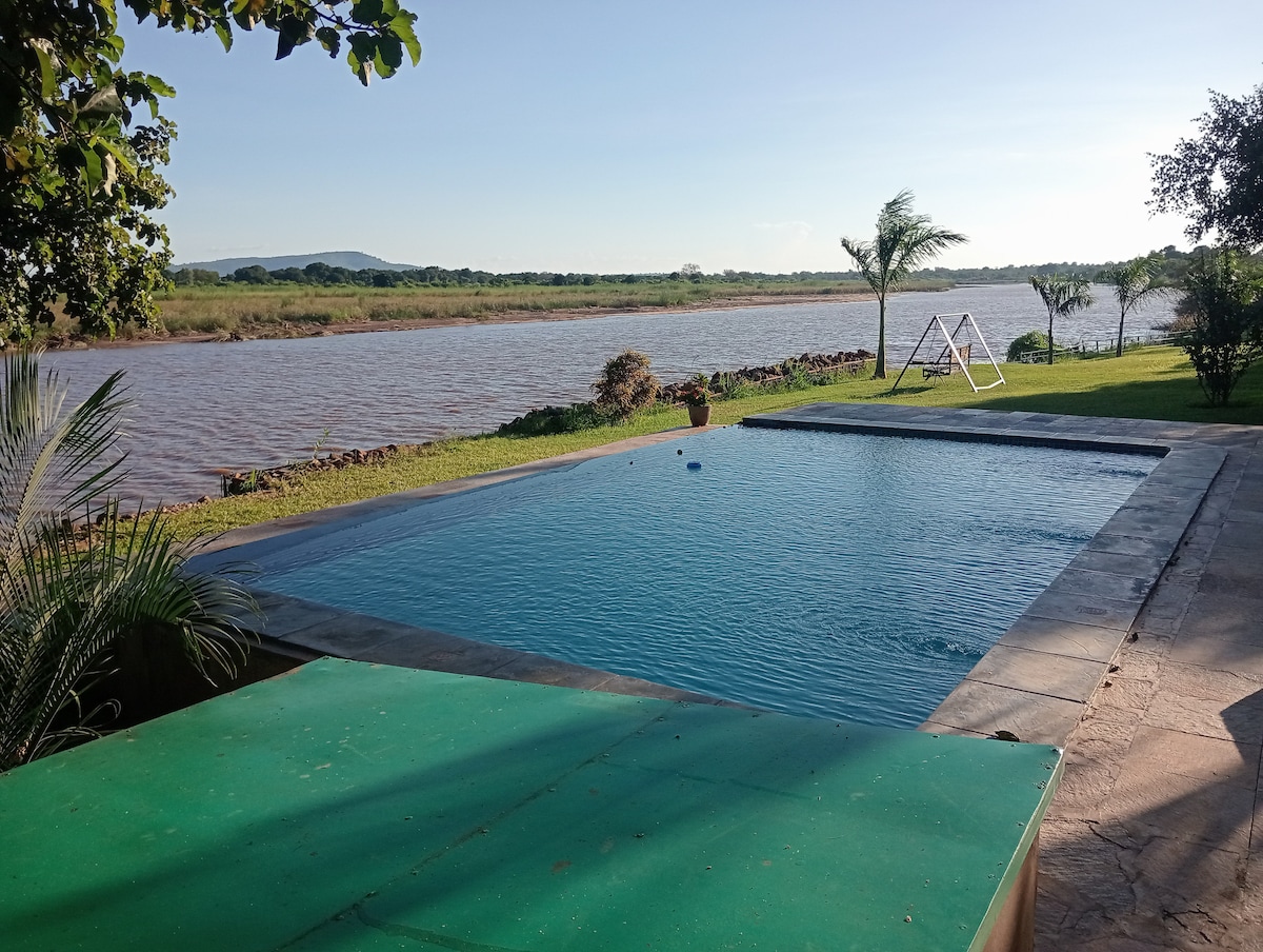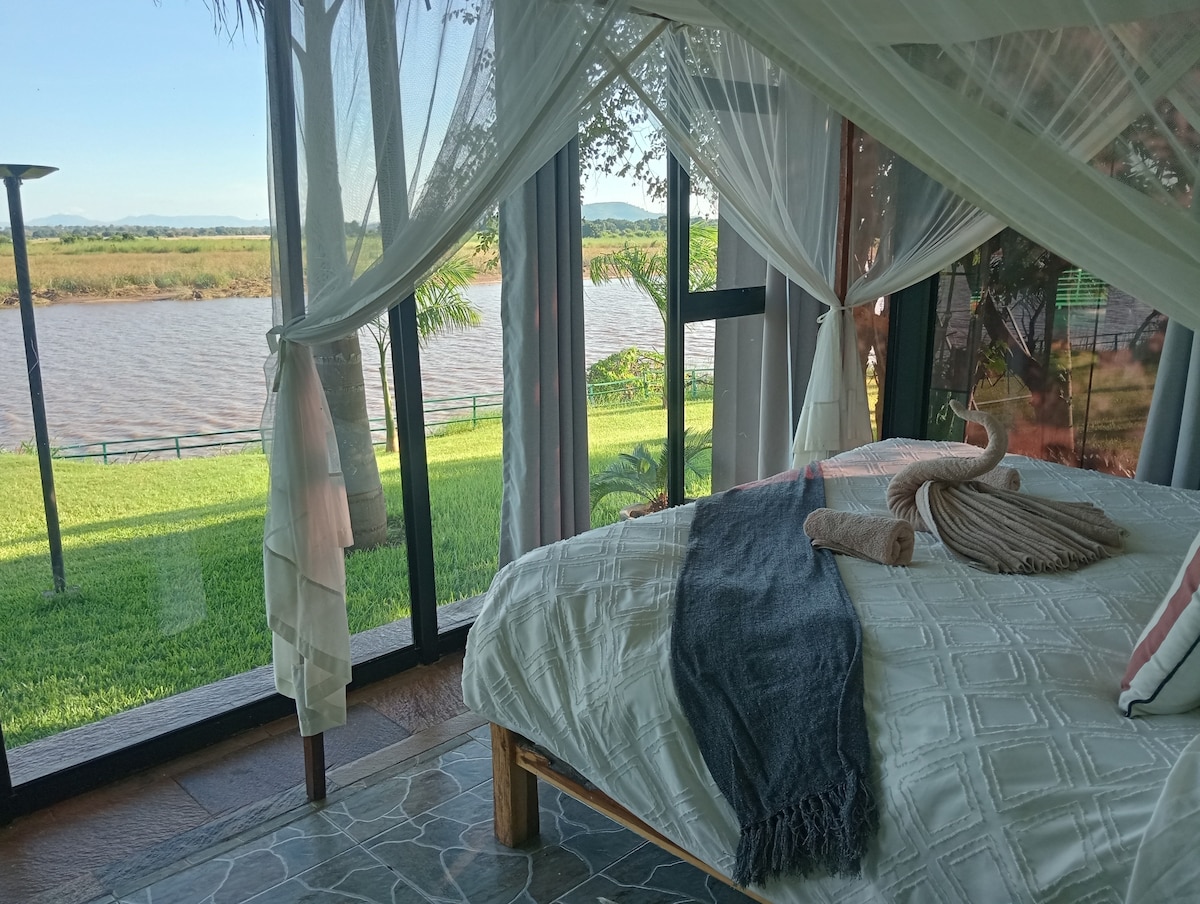 Relax with the whole family along the mighty Zambezi River. Enjoy the peaceful sound of nature and refresh yourself fully! High speed starlink internet ensures you stay connected and upload your experiences. Backup electricity keeps you plugged into power always. This is a fully serviced apartment. Activities -Game drive safaris in the lower Zambezi National Park. See game in their natural environment. -Boat cruise. Free boat cruise for those spending 2 nights or more. -Canoe safaris. -fishing