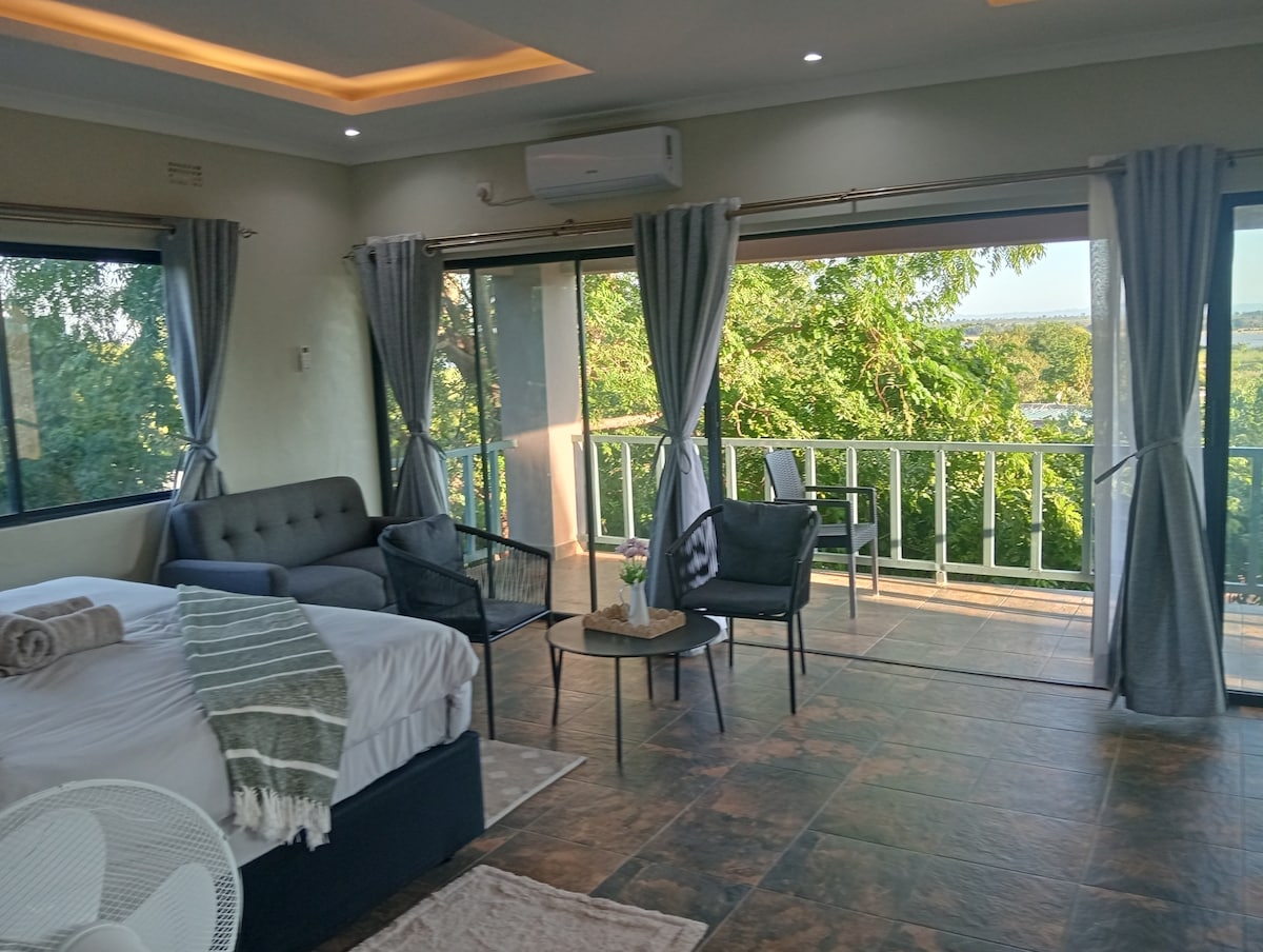 Welcome to the Taonga Loft, a charming upstairs flatlet with a private entrance and a spacious balcony offering breathtaking views of the Mulungushi River. The balcony is fully equipped with outdoor cooking facilities, making it the perfect spot for enjoying meals in the fresh air while taking in the peaceful riverside scenery.