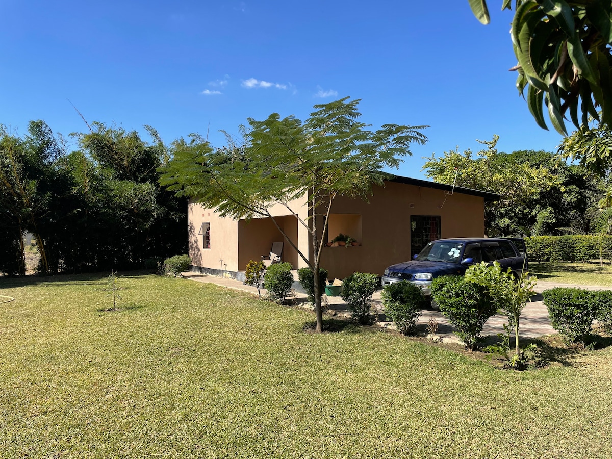 The 3-bedroomed house with a master bedroom is located on a farm block in a residential area in-between the airport and Lusaka Centre. It is a short drive to shopping hubs of Lusaka such as East Park and Garden City. The house is equipped with full kitchen, bed linen, flat screen tv and unlimited high speed WIFI. Daily cleaning and laundry are included. The house has a beautifull garden with plenty of fruit trees and various species of birds! A perfect place for a business trip or for leisure.