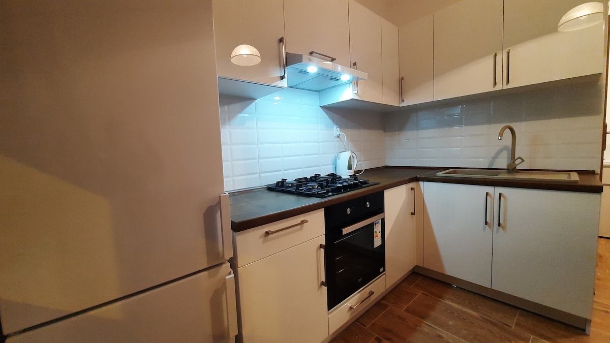 Komfortowe mieszkanie w centrum Biłgoraja. Apartament znajduje się na drugim piętrze i składa się z: - sypialni z dużym, wygodnym łóżkiem oraz przestronną szafą (istnieje możliwość dostawienia łóżeczka dla dziecka), - oddzielnej, w pełni wyposażonej kuchni (lodówka, czajnik, kuchenka, ekspres do kawy, naczynia), - łazienki z prysznicem oraz wc. Bezpłatny parking. Wi-Fi. Lokalizacja w pobliżu Rynku (450 m), sklepów, kawiarni, restauracji, kina. 2 km Zalew Bojary 1 km Miasteczko Kresowe 2 km las