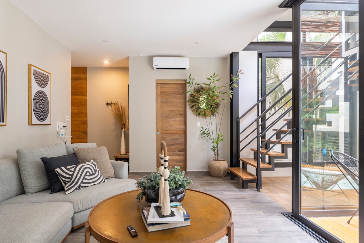Our modern two-bedroom apartment with a private plunge pool is situated within a premium residential condominium, offering an exclusive and comfortable stay. Perfect for couples, friends, or small families, this space is designed to provide both relaxation and sophistication. Whether you're looking for a peaceful retreat or a stylish base to explore Tulum, this apartment offers the perfect balance of comfort and sophistication. Elevator may not be available during your stay. Out of our control