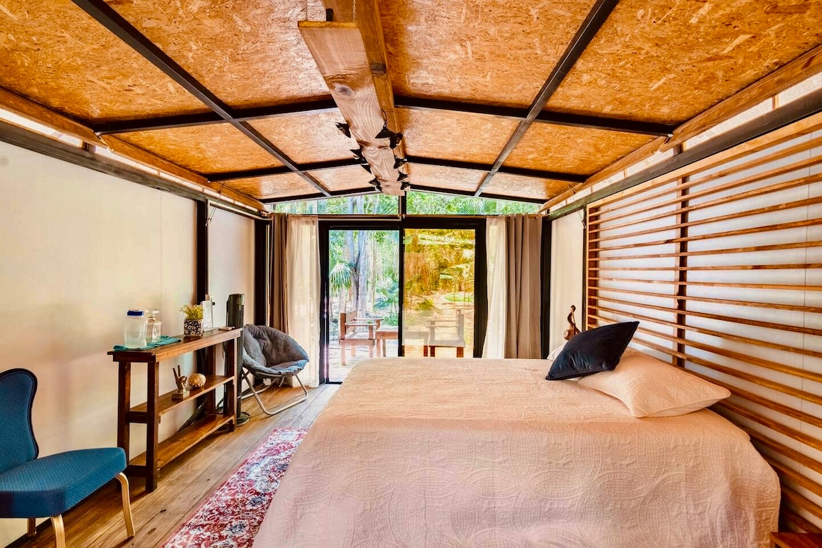 Casa Kokí is one of the only villas in Tulum with a heated private pool. Located in La Veleta, 20 min from the beach, our designer hideaway blends modern comfort with a local, bohemian vibe. Enjoy 100 Mbps Wi-Fi for work or streaming, then explore nearby cafés, bakeries, and bars. Roads here are unpaved and bumpy — part of the off-the-beaten-path charm — but you’ll return to a private, peaceful retreat where warm water, soft lighting, and jungle sounds set the mood for total relaxation.