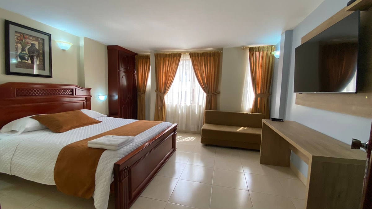 Nuestro hotel te ofrece una estadía moderna, segura y cómoda en pleno centro de Loja. Con 40 años de trayectoria y renovado recientemente, es perfecto para ejecutivos y familias. La tarifa incluye desayuno y wifi de alta velocidad. Además, cuenta con restaurante, lavandería y garaje privado. Nuestro equipo está siempre disponible para brindarte una atención cálida y ayudarte a disfrutar al máximo tu visita.