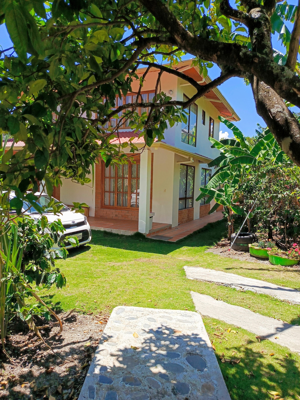 Esta encantadora casa, situada a solo 4 cuadras del parque Central de Vilcabamba, ofrece un refugio sereno y natural. Rodeada por un exuberante bosque frutal de una hectárea, con acceso al río y senderos para explorar, es el lugar perfecto para quienes buscan paz y conexión con la naturaleza.