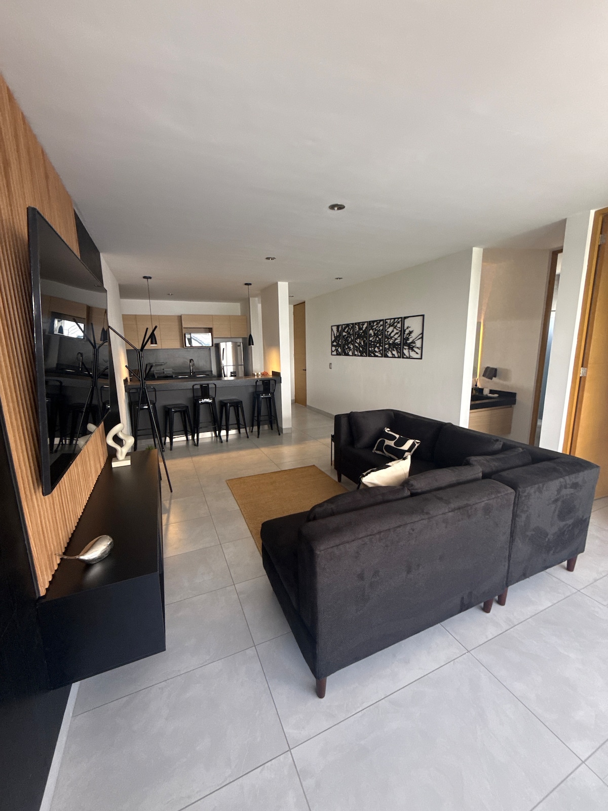 Omega Black, New Apartment 7 min from Colosio Av. Amazing view from 8th floor, TV 75", 65" and 58", private terrace, Optional AC for main bedroom $300 per night. 24 Hr security guard, private parking, and 2 elevators. Currently Building ammenities are restricted for Airbnb. Commercial center with Starbucks and Gold Gym at one side of the tower. One car allowed.