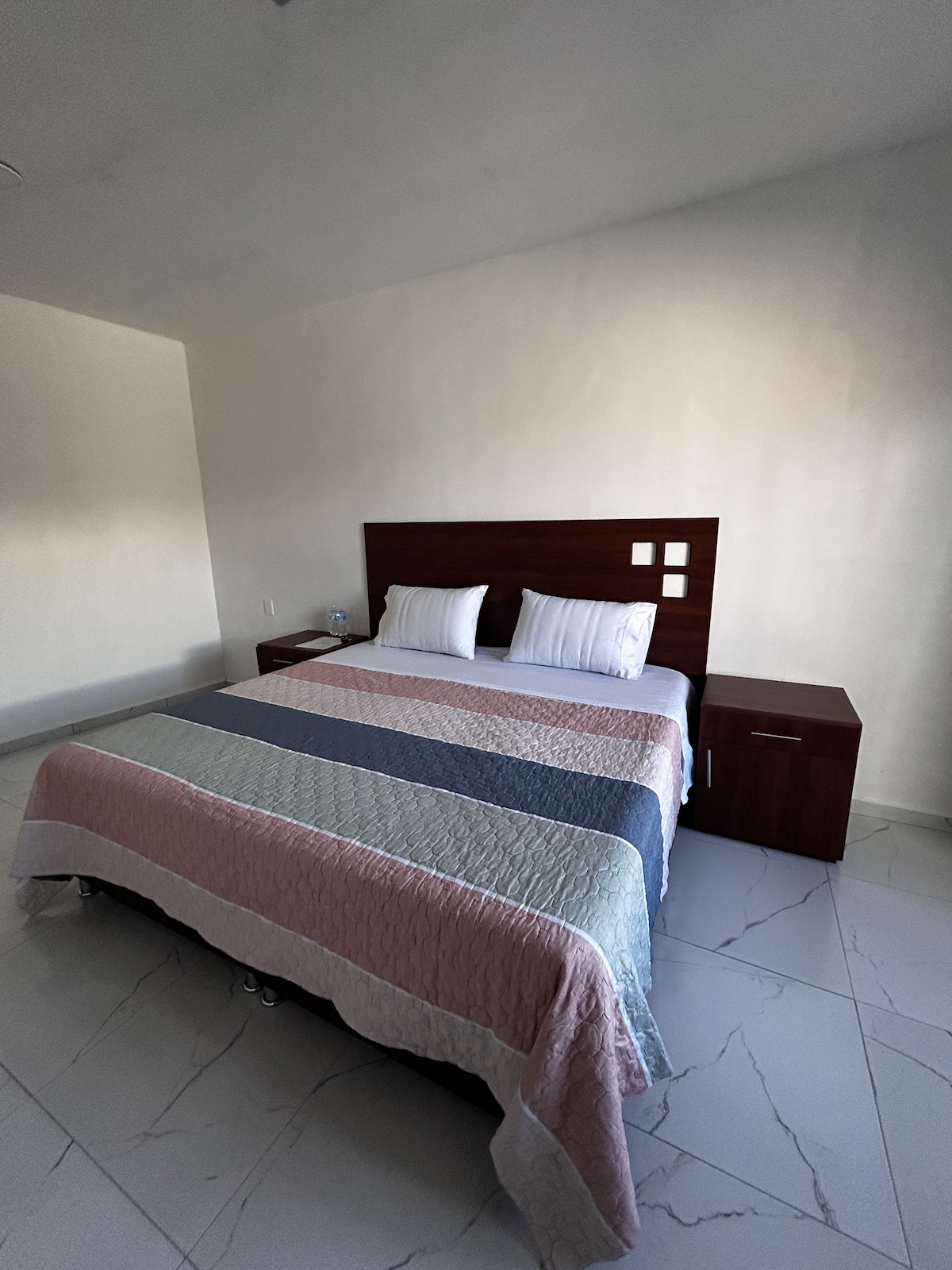 Espacio cómodo y tranquilo. El Cuarto 2 se encuentra en la planta baja del complejo y cuenta con baño privado, televisión y una cómoda cama king size. Es una habitación ideal para parejas que buscan descanso y privacidad