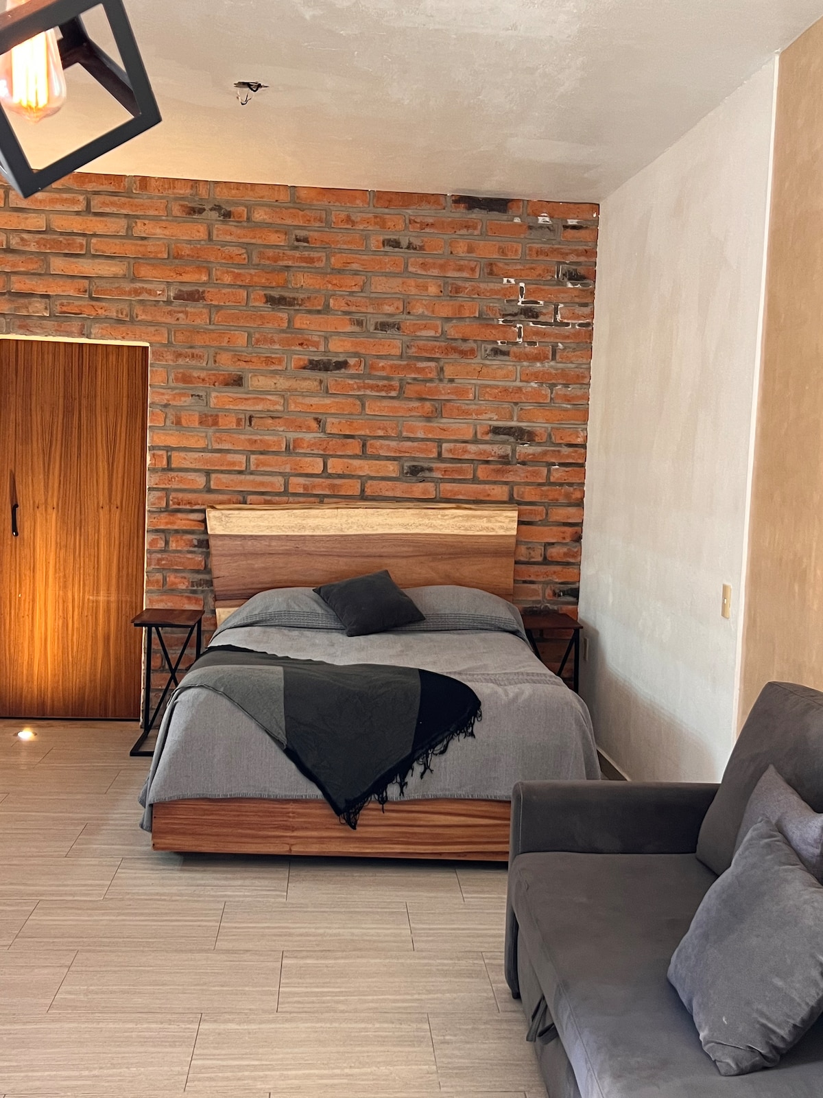 Habitacion #C privada en un espacio centrico, dentro del pueblo magico de Calvillo, Aguascalientes. Cuenta con balcón a la calle, 1 cama king size, 1 sofá cama individual, baño completo, aire acondicionado, WiFi, Smart TV, y acceso a todas las áreas comunes y a la cocina completamente equipada en planta baja.