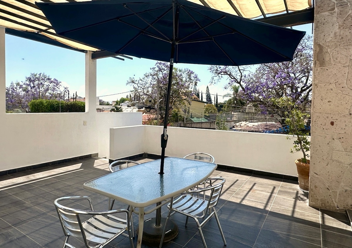 Private modern loft with a large private terrace to enjoy the beautiful weather of the Lake Chapala area. Includes a King-size bed, comfortable sofa, a kitchen, dining table and private bathroom. Español Moderno loft privado con amplia terraza privada para disfrutar el agradable clima de la Ribera de Chapala. Incluye cama King Size, sofá cómodo, cocina, comedor y baño privado.