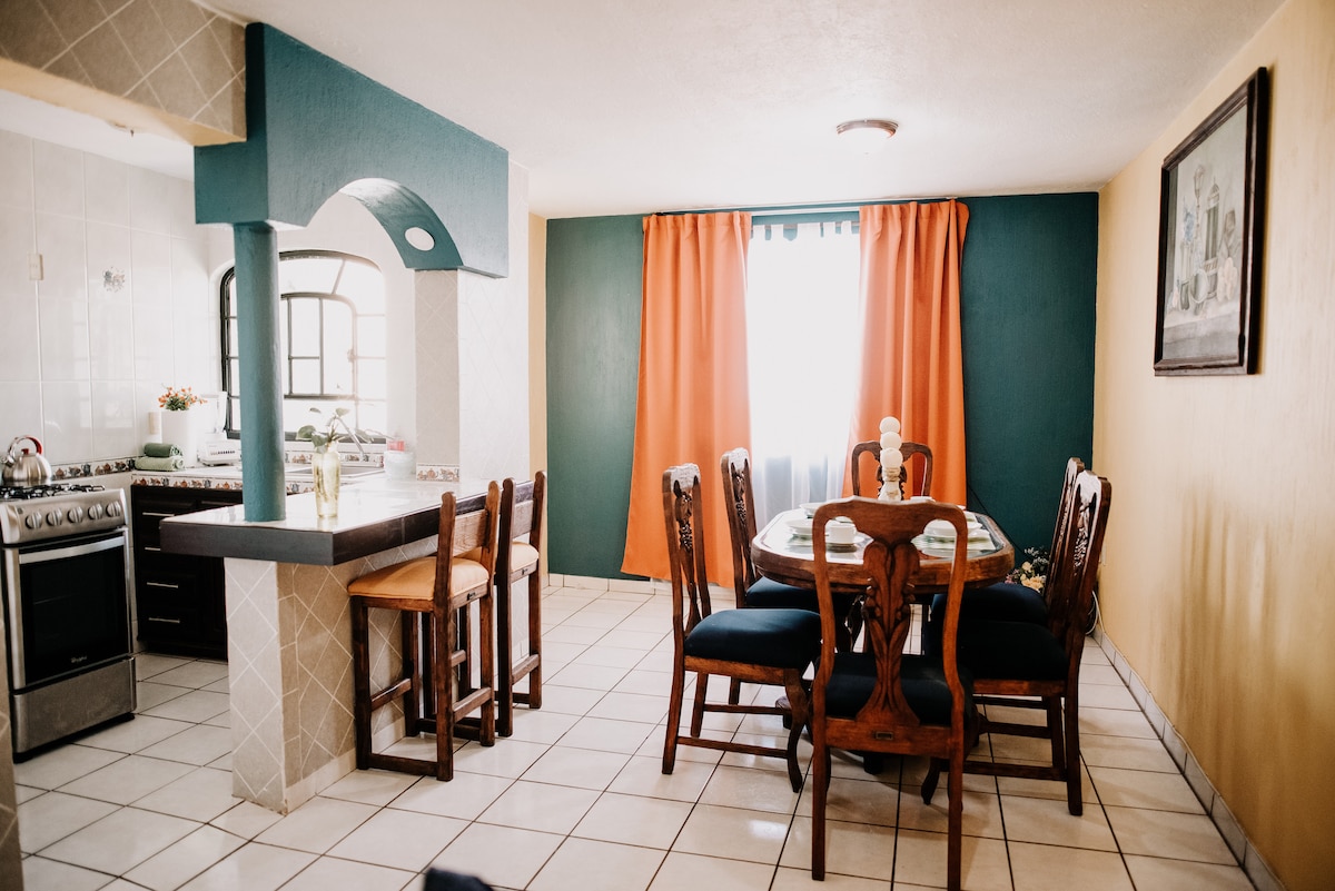 Central apartment with easy access and great mobility to any part of the city. Features a full kitchen, 2 bedrooms, and off-site parking just steps away. Located less than a 10-minute walk to Jardín de San Marcos and the Historic Downtown, making it ideal for visiting the San Marcos National Fair (April–May). The apartment is on the 3rd floor. Owners live on the 2nd floor, allowing for personalized assistance. A mini market is on the ground floor, with a laundromat nearby.