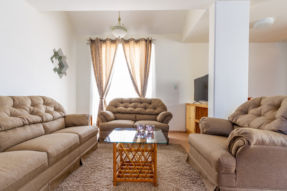 Hospédese con la confianza de AR SUITES, símbolo de excelencia y hospitalidad en Zamora. Este amplio y elegantemente departamento ofrece el equilibrio perfecto entre confort y estilo. Disfrute de un descanso incomparable con colchones, almohadas y sábanas de alta calidad, y mantenga la temperatura ideal con aire acondicionado. Ubicado muy cerca del Santuario, sobre La Calzada, la avenida más bonita, segura y con mayor comercio, podrá moverse caminando a todos sus destinos. (Sí facturamos.)