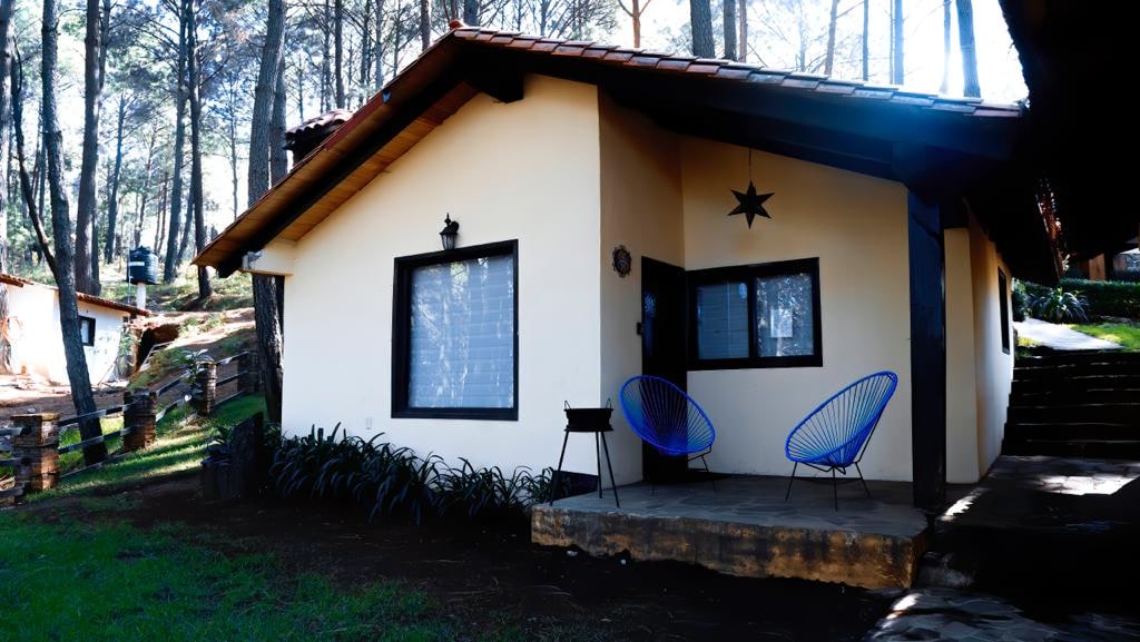 Cabañita inteligente y acogedora, ideal para parejas que buscan una escapada cómoda y diferente. Ubicada en el bosque de Mazamitla, con fácil acceso al centro del pueblo y a la cascada El Salto. Cuenta con aproximadamente 30 m², diseño compacto y tapanco pequeño destinado únicamente para dormir. No es apta para niños ni mascotas. Aunque está rodeada de bosque, colinda con la calle de acceso al desarrollo.