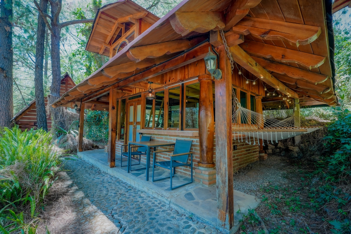 Relájate en este espacio tan tranquilo y elegante, Disfruta del encantador entorno de esta romántica Cabaña Prieta. Se encuentra ubicado a 5 km de la plaza principal, esta rodeada de enormes pinos, cuenta con acabados de lujo, Cocina equipada, Jacuzzi, Terraza con vista Panoramica, TV con sistema Dish. Todo lo necesario para que pases un agradable noche con tu pareja en la naturaleza.