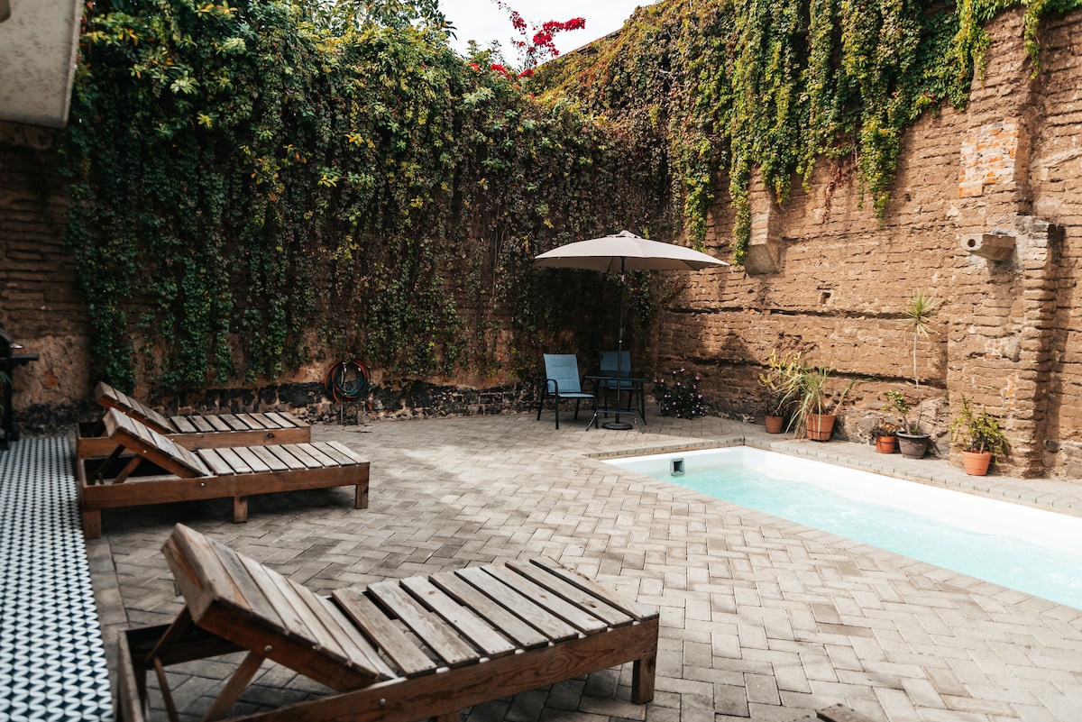 Casa ubicada en el centro histórico de la ciudad de León, Guanajuato con más de 100 años de historia, recién remodelada con acabados rústicos - contemporáneos, cuenta con una terraza con tina al exterior para tiempos de calor, para una estancia relajada, llena de paz y tranquilad en un ambiente privado.