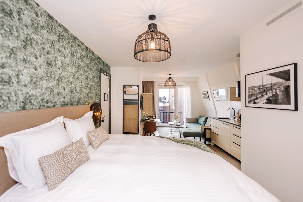 Signature deluxe studio offers a spacious retreat for leisure and business travellers, featuring a comfortable double bed, cozy seating, and a private kitchenette. Enjoy luxury amenities such as air conditioning, minibar, safe, flat-screen TV, free wifi, and a private bathroom with relaxing bath and rain shower. The kitchenette provides added convenience for your stay.