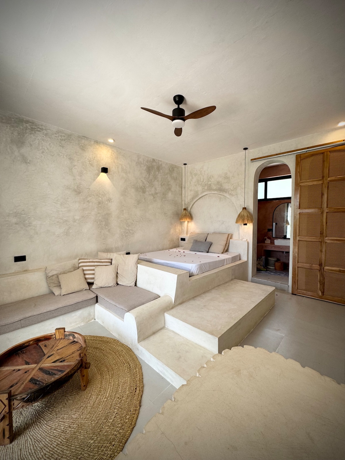 Nestled just a short stroll from the pristine white sands of Kiwengwa Beach, our charming little guesthouse offers a perfect blend of comfort, style, and tranquility. Situated few meters from the beach,the house is thoughtfully designed in a laid-back bohemian style, with natural textures, light tones, and carefully curated details that give it a relaxed and welcoming vibe. * Step outside to your private patio * Fully equipped with everything you need (AC, fridge) * Practically on the beach