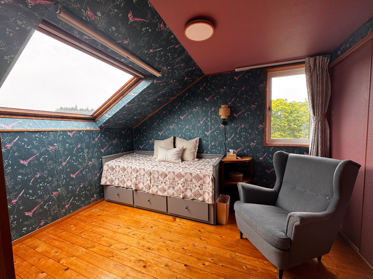 Relax in stylish comfort at Chidori Cottage — a peaceful, newly renovated one-bedroom retreat designed for two. Thoughtfully furnished with Japanese antiques and modern touches, it features a loft, a cozy pellet stove for chilly evenings, and a spacious wrap-around deck. Aesop toiletries, premium bedding, and complete forest-edge privacy create an atmosphere of quiet luxury — perfect for couples seeking rest, tranquility, and a convenient base for exploring Yamagata’s natural and cultural charm.