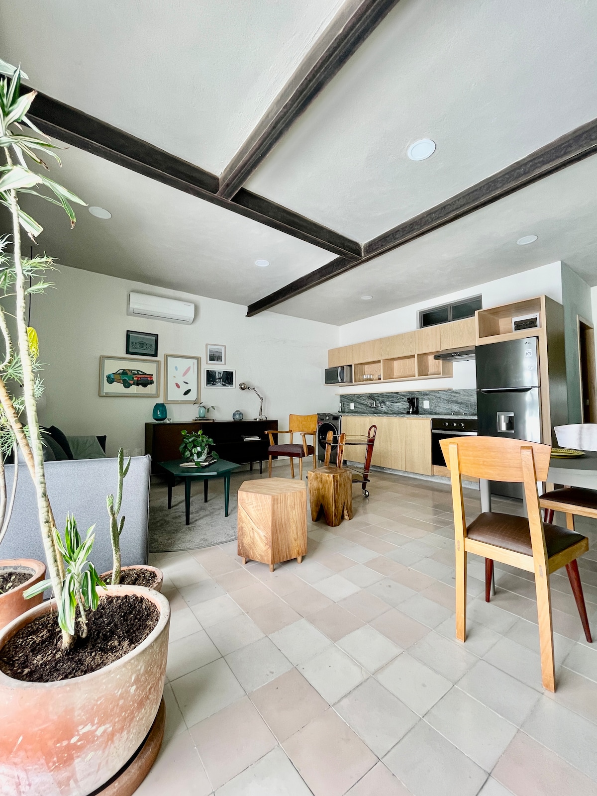 Hermoso Loft muy practico para estancias cortas o largas muy comodo tiene todo lo que puedes necesitar, Cocina Equipada, TV Con cable, WIFI. La entrada principal a la propiedad es compartida y puedes usar patios y terrazas. para acceder a las habitaciones hay que subir escaleras para que lo tomes en cuenta. si vienes en auto Tenemos lugares en una pension a 300mts. la pension cierra a las 10pm. contactanos para los horarios en fines de semana y dias festivos