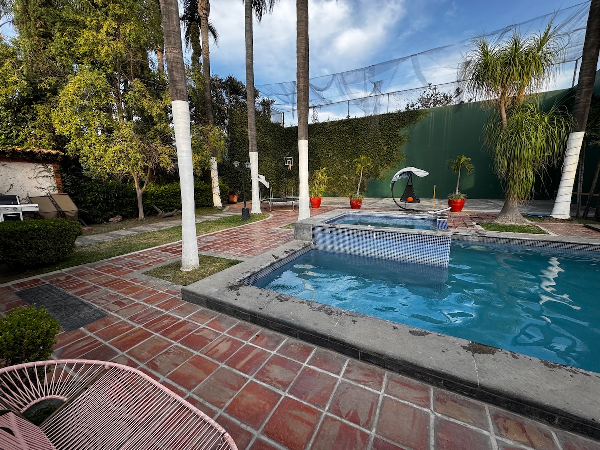 Casa tipo Hacienda Con chimenea, un área de jardín muy amplio, donde sentiras La Paz de de la naturaleza, y podrás disfrutar de tardes con tus hijos y o carne asada con amigos y los niños pueden jugar y correr También contamos con alberca de 5 x4 tibia en meses cálidos fría en invierno WiFi, balcón con hamaca para disfrutar la vista Ideal para desconectarte de la ciudad. si estás cansado o estresado es el lugar indicado Estamos cerca de la barranca y zoológico de Guadalajara