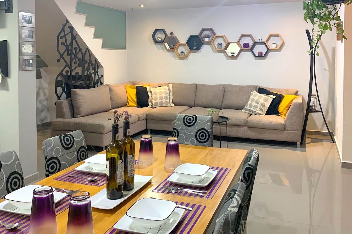 Spacious, cozy apartment, ideal for working with excellent internet! 100 Megas.Two large bedrooms both with air conditioning, full bathrooms, walk-in closet, and ceiling fan. TV room where a fifth person can sleep. Living+dining room with a large window, and 4 portable fans to move around any area. Fully equipped kitchen includes dishes for 6 people. Previous guests have praised our apartment for its stylish decor, comfortable amenities, and prime location near vibrant cafes and restaurants.