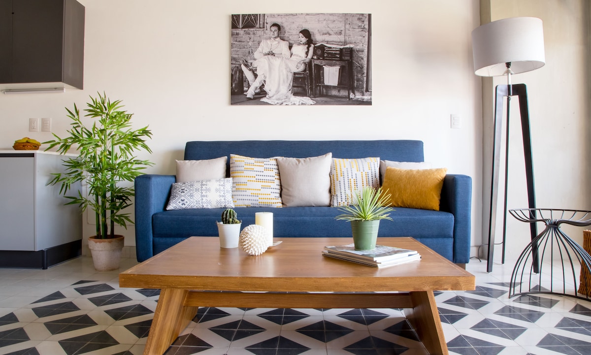 Disfruta la mejor ubicación de GDL en la Colonia Americana. Todo a tus pies: restaurantes, bares y cultura sin usar auto (Walk Score 99). - Comfort Total: Cama King Size, sofá cama y AC. - Conectividad: Wifi 211 Mbps (verificada) y seguridad 24/7. - Plus: Sistema de agua purificada por ultra filtración. Hospédate en una zona con atmósfera vibrante y llena de vida. Ideal para quienes buscan conectar con la energía auténtica de Guadalajara y tener todo a unos pasos (cafetería, 7-Eleven, bus).