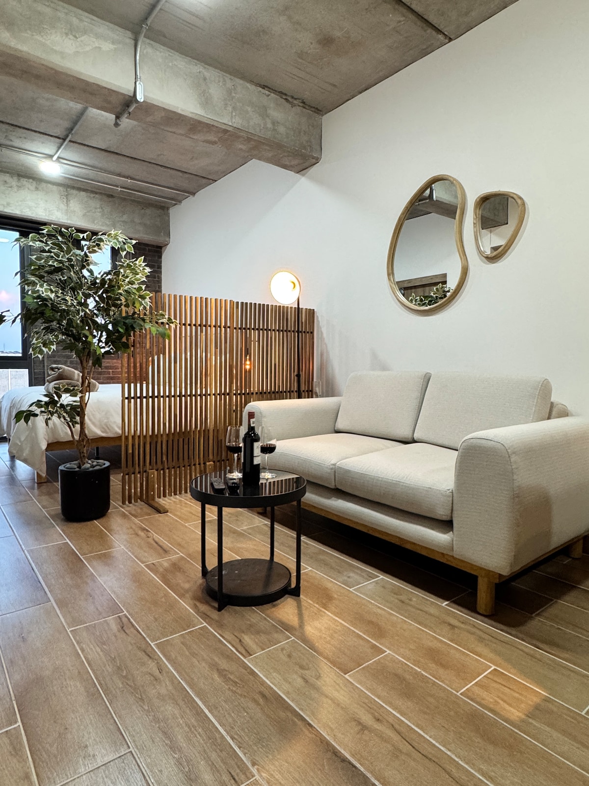 Perfect for couples or solo travelers seeking style and comfort. This modern loft offers spacious interiors, high-speed WiFi, air conditioning, and a private sauna for ultimate relaxation. Located in Americana, you’re steps away from cafés, galleries, restaurants, and vibrant nightlife. A high-quality stay that lets you experience the best of Guadalajara with elegance and ease.