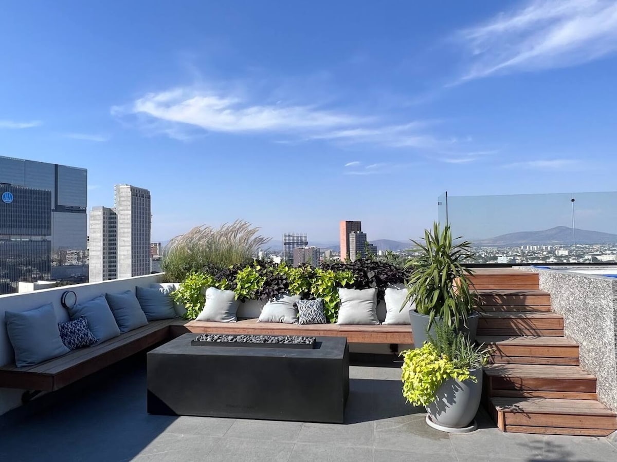 This loft is located in one of the trendiest areas of Guadalajara, but with all the comforts you need. From free parking, 24/7 security and the opportunity to walk to the supermarket or have a coffee nearby. We designed this ideal space to receive guests who want to work from home with a super internet and enjoy the city in the afternoon. The building has amenities such as a rooftop with the best 360 views of the city and an urban wall with private rooms