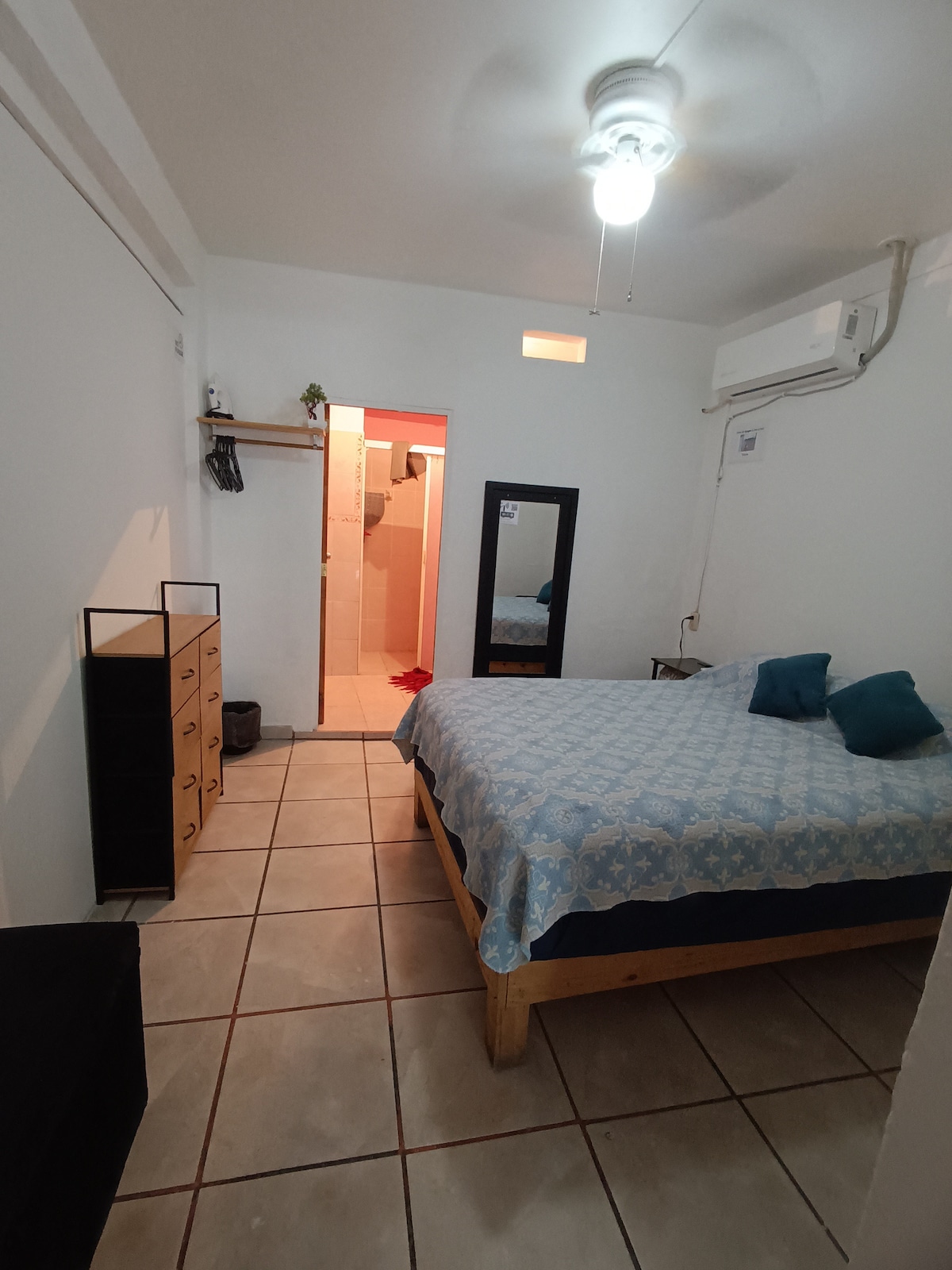 Disfruta de la comodidad de este "Estudio" tranquilo y céntrico. Ubicado en la parte trasera de mi casa con entrada independiente. Equipado con aire acondicionado, WiFi, Smart TV, además cuenta con estacionamiento cerrado y gratuito dentro de las instalaciones. Hay un patio grande y 2 terrazas compartidas en donde sí se permite fumar. La cama es tamaño matrimonial.