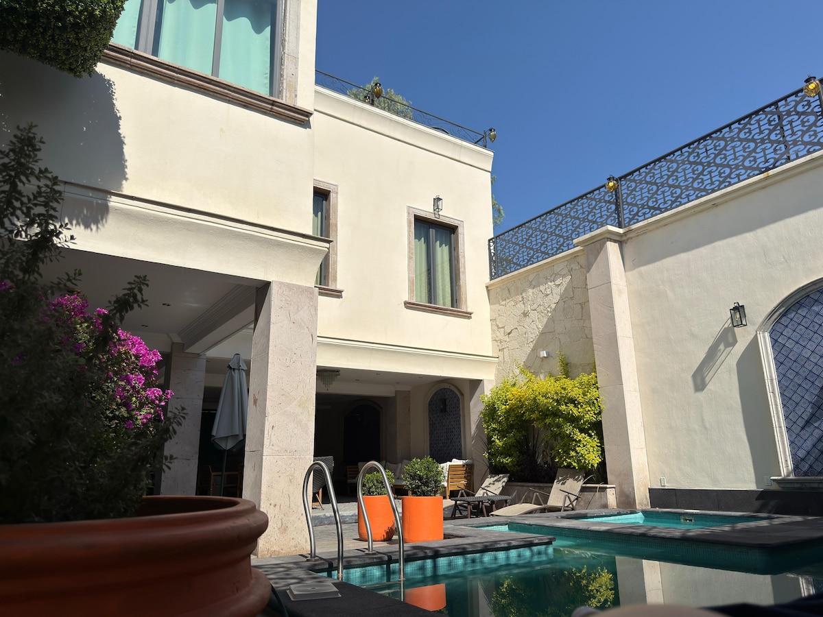 Very spacious home with two bedrooms (King and Queen), AC, smart lights, electric curtains, high speed internet Wi-Fi, Infinity pool, lounge area, roof garden and everything you need for a day or many months stay. The tower has a shopping area, top-notch restaurants, and it is walking distance from Landmark, Andares and Acueducto malls and The Colomos forest. We sanitize and clean the entire condo. Please read the rules before you reserve.