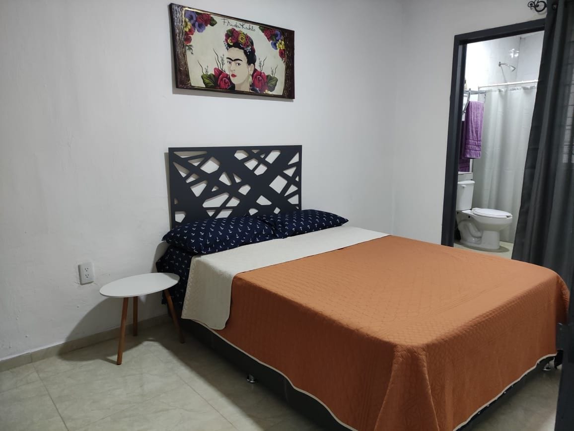 Hospédate en este bonito departamento, completamente privado, CUENTA CON AIRE ACONDICIONADO EN LA HABITACIÓN, ubicado en una zona muy tranquila y céntrica. Plazas, tiendas, lavanderías a solo unas cuadras A unas cuadras de Lázaro Cárdenas y 8 de julio, varias opciones de rutas al centro y a la zona de Chapultepec donde encontrarás bares y restaurantes.