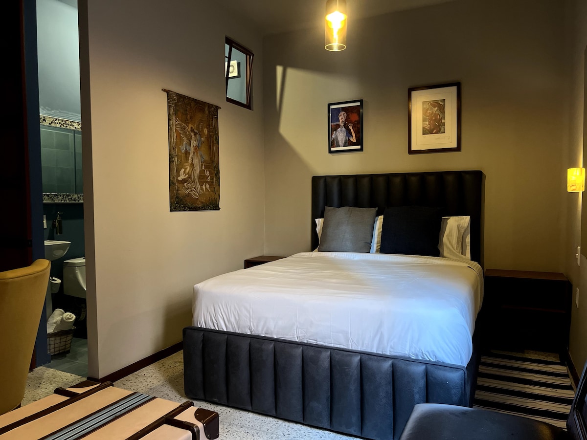 Disfruta de una experiencia auténtica en este alojamiento 100% restaurado. Rescatamos toda su esencia y la mejoramos, ubicado en la colonia Americana, conocida por su oferta cultural, gastronómica y por estar cerca de la embajada. Estudio Tlalpujagua cuenta con: Cama Queen Size - colchón de última tecnología Cocineta con microondas, cafetera, licuadora y copas de vino TV de 50in con Netflix y HBO Refrigerador minibar
