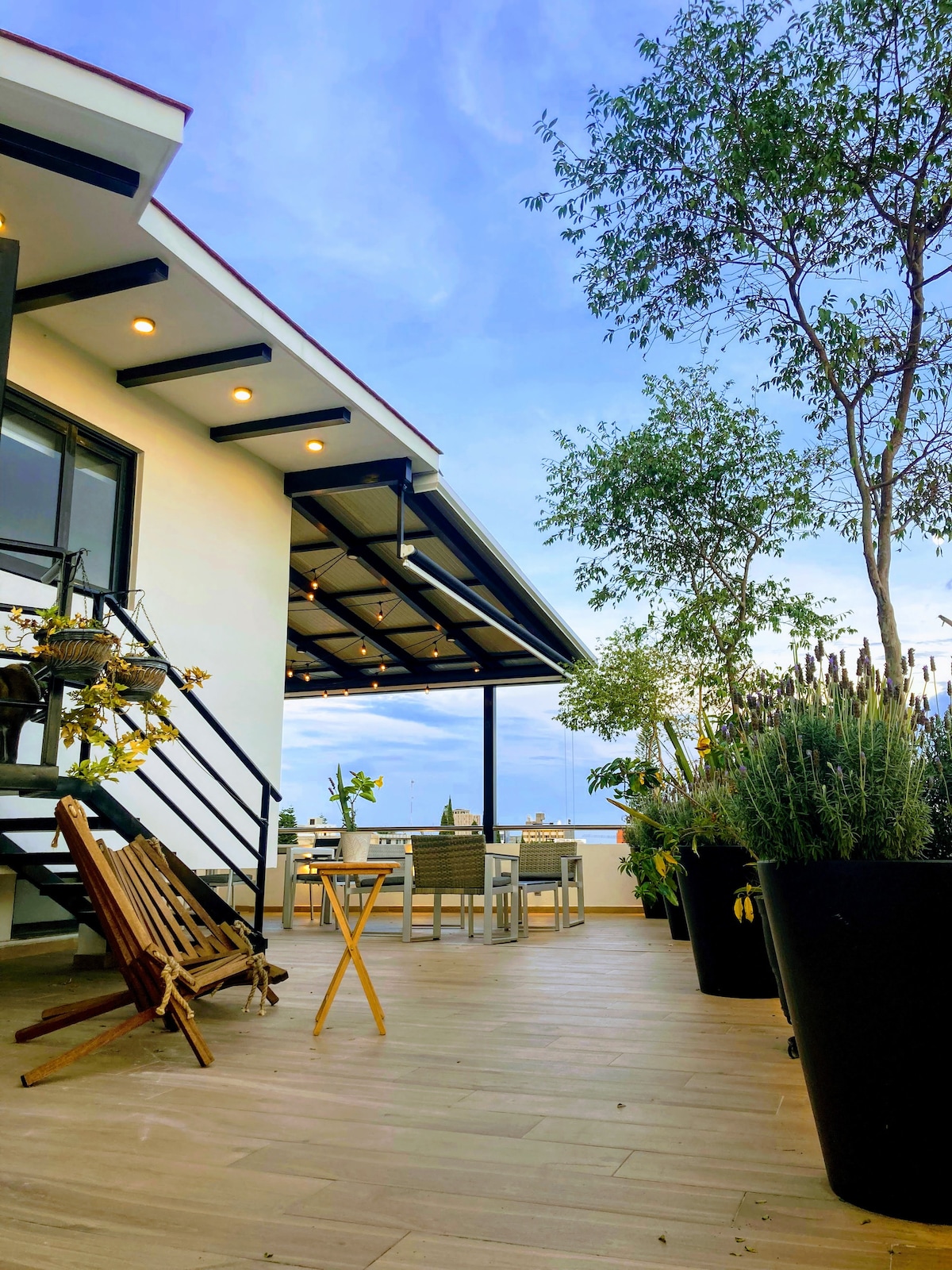 Disfruta los bellos atardeceres de Guadalajara en una de las colonias más seguras, mejor conectadas y de mayor oferta gastronómica de la ciudad. Este moderno estudio pet friendly, está acondicionado para estadías cortas o largas. Cuenta con una extraordinaria terraza para recibir a tus visitas. Es un departamento entero con una cama queen, comedor, cocina integral, terraza privada, lavadora, plancha, televisión, internet (100 mb) y caja fuerte. Se encuentra en tercer piso y no hay elevador.