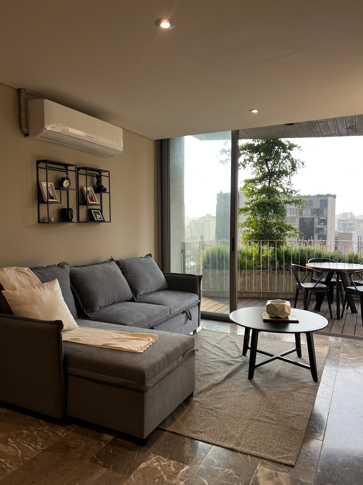 This loft is located in one of the trendiest areas of Guadalajara, but with all the comforts you need. From free parking, 24/7 security and the opportunity to walk to the supermarket or have a coffee nearby. We designed this ideal space to receive guests who want to work from home with a super internet and enjoy the city in the afternoon. The building has amenities such as a rooftop with the best 360 views of the city and an urban wall with private rooms