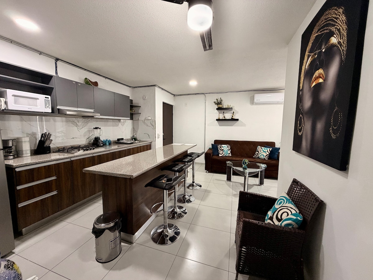 ENJOY A STYLISH EXPERIENCE IN A SAFE PLACE When you go on vacation, you are looking for either of these things: Have fun or relax. If you are reading this you are lucky, because in our apartment you can do both! you still don´t believe it? With a perfect location to be close to the best shopping centers and entertainment venues in Guadalajara. Our cozy, spacious and impeccable apartment is equipped to accommodate 2 people in an area with guaranteed security.