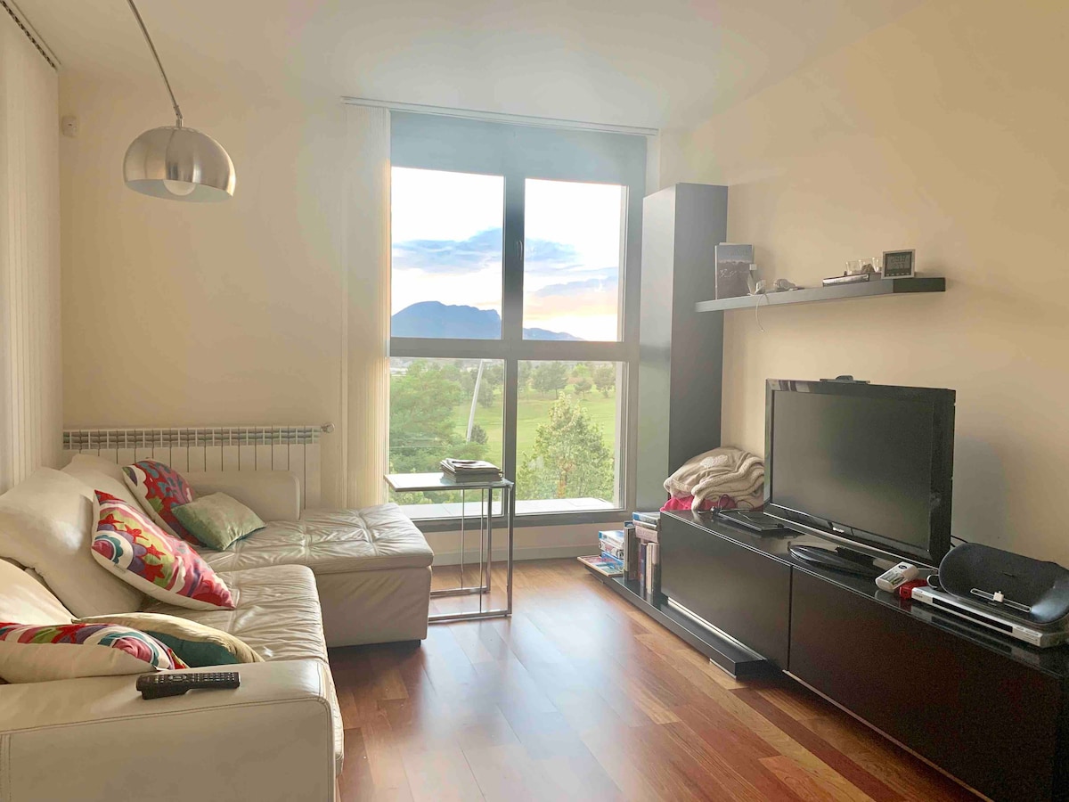 Apartamento tranquilo para descansar, relajarse y/o teletrabajar con terraza acristalada con fabulosas vistas al Pirineo aragonés. Cuenta con plaza de garaje y trastero. Urbanización las margas golf con instalaciones deportivas: piscina, pistas de pádel, tenis, frontón, multideporte y campo de fútbol. Entorno excepcional junto al valle de Tena, ruta de las iglesias del Serrablo y a poco más de media hora de 4 de las estaciones de esquí de Aragón, del valle de Ordesa y Monte Perdido y de Aínsa.