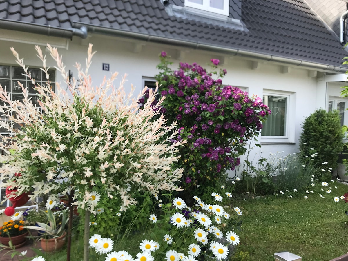 Vor den Türen Schwerins liegt unser über 100 Jahre altes Wohnhaus mit angrenzendem Neubau mit zwei individuell gestalteten Ferienwohnungen. Die "Gardenview" eignet sowohl für Geschäftsreisende, als auch Individualreisende. Sie befindet sich im 1. Stockwerk und bietet einen lichtdurchfluteten Wohnraum mit Kingsizebett, Schreibtisch und kleinem Essbereich mit Hochstühlen. Eine angrenzende Küche, sowie ein separates Duschbad runden die Wohnung mit Gartenblick ab.