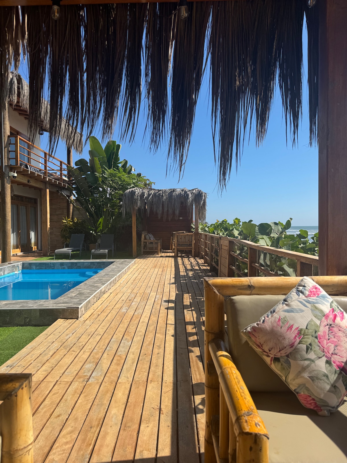 La casa está totalmente equipada y guardianía 24/7 Cuatro dormitorios, todos con baño, cama matrimonial, camarote, Smart TV con cable, terraza con hamaca, todos con baño completo. WIFI Cuenta con la atención de una sra. de mantenimiento que hará camas y limpieza. También podría contar con el servicio de un chef que preparara los deliciosos platos de la zona. La casa está frente al mar, tiene una linda ramada amplia para protegerse del el sol, con poltronas, también cuenta con piscina
