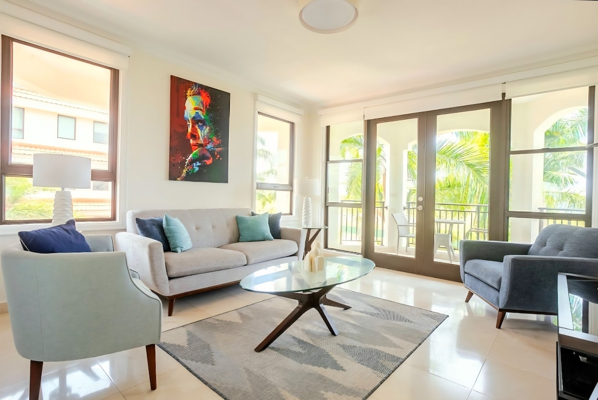 Villa is located in a gated complex with 24hr security inside the Rio Mar Resort. 1st floor (one set of stairs going down), the property features central A/C, Cable, Wifi, 1 parking, sofa bed, bodyboards, beach chairs, toys, towels and cooler. Kitchen is fully equipped. The 1st bedroom features a king size bed, a walk-in closet, private balcony and a full bath. The 2nd bedroom features two queen size beds with a closet and a full bath. The property has a GOLF CART available for rent separately.