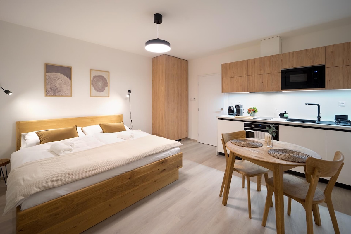 全新、阳光明媚的单间公寓,步行10分钟即可抵达市中心