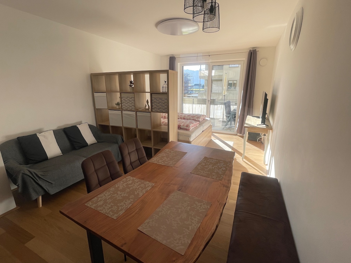 Enjoy your vacation with family or friends at this peaceful, stylish place. A 2-bedroom freshly renovated apartment with a spacious living room awaits you in St.Gilgen (Laim). Start your morning with a coffee on the balcony with breathtaking view to lake Wolfgangsee and the surrounding mountains. Away from the crowds still closeby (12 min walk to the lake). Relax at the lake, walk in the forests, enjoy the fresh alpine air, bike along the valley, take the cable car or a train the mountain peaks.