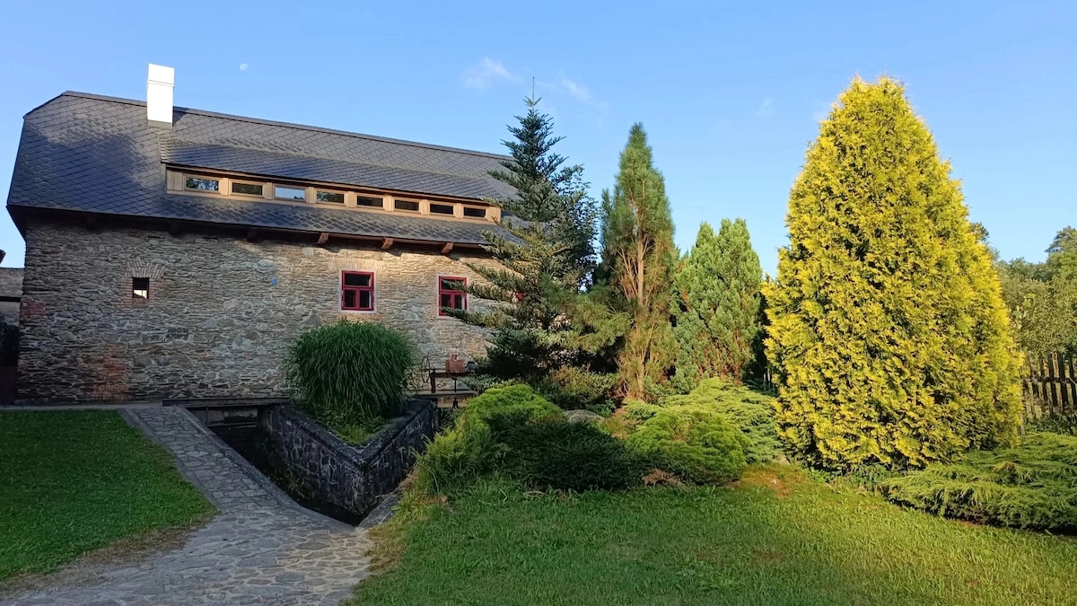 Accomodation in a family house (down stair - 1.floor) almost in the secluded area next to the wood. Upper floor in undergoing reconstruction. Accomodation offers 8 beds, around the house is a garden with seating and barbecue. Possibility of storing bicycles and skis. wellness - hot tube Surroundings: Pond Janus (2km), River Pond (5km), cycling, hiking, cross-country, skiing (Hlinsko Ski Resort), wellnes (Hotel Styl Hlinsko - 7 km), Veselý kopec, Peklo Čertovina, Doubravka and many others