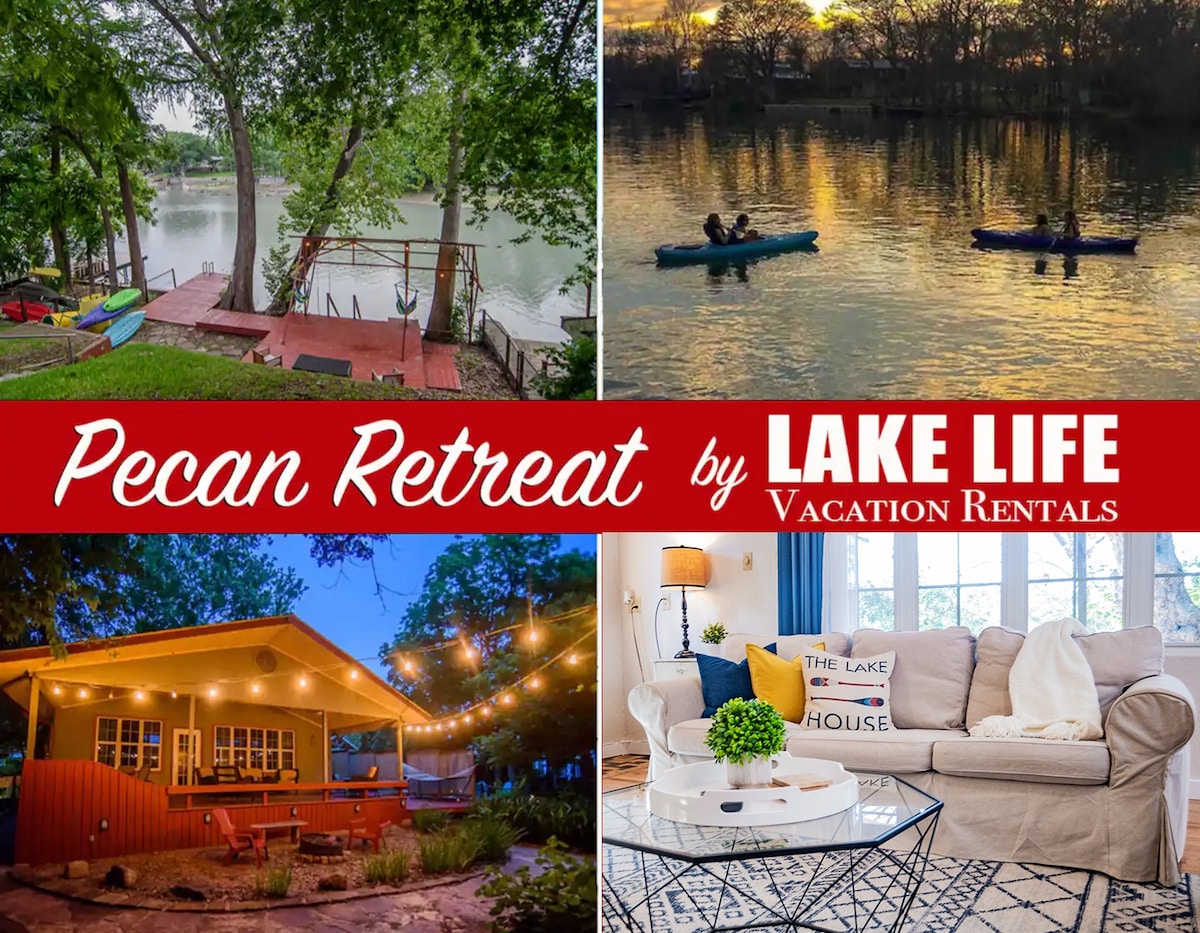 The Quiet Lake Cottage is tucked away under towering cypress and pecan trees along the banks of Lake McQueeney/Guadalupe River. The original charm of this 100-year-old cottage complements the contemporary amenities and designer touches. Enjoy this peaceful oasis for a girls’ trip, a romantic weekend or a family vacation. Spend the day swimming, floating or kayaking and finish up with s'mores or wine around the gas fire pit. *ONLY 9 miles from Gruene, Schlitter Bahn & New Braunfels.
